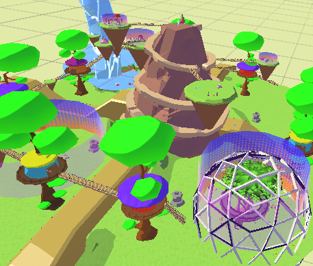 This is World 2: An extremely nature-positive habitat with a giant mountain in the center. Don’t forget to visit the White Dome Memorial Garden and the various treetop houses in which the people of this habitat lived!